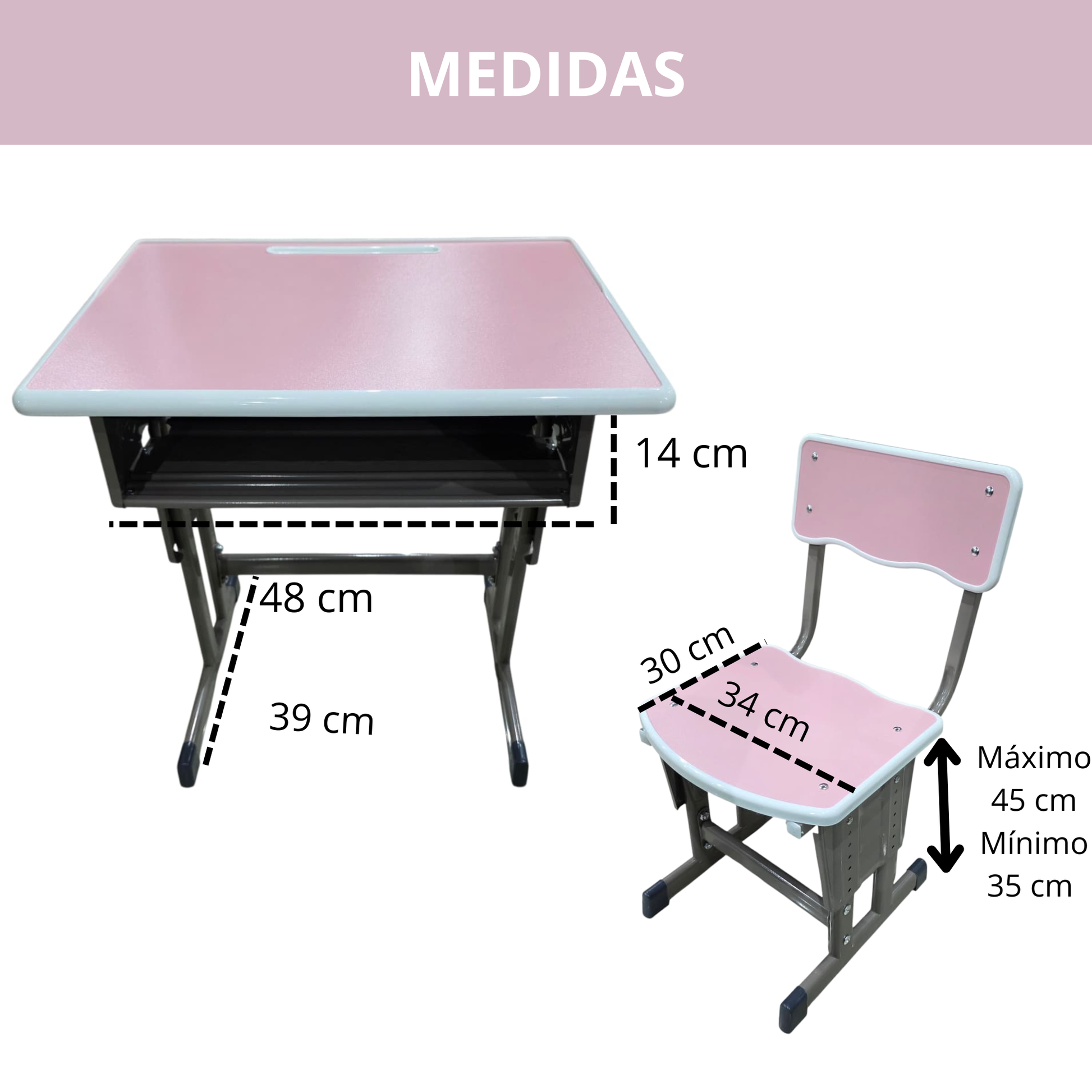 Escritorio Infantil De metal Ajustable Con Banco