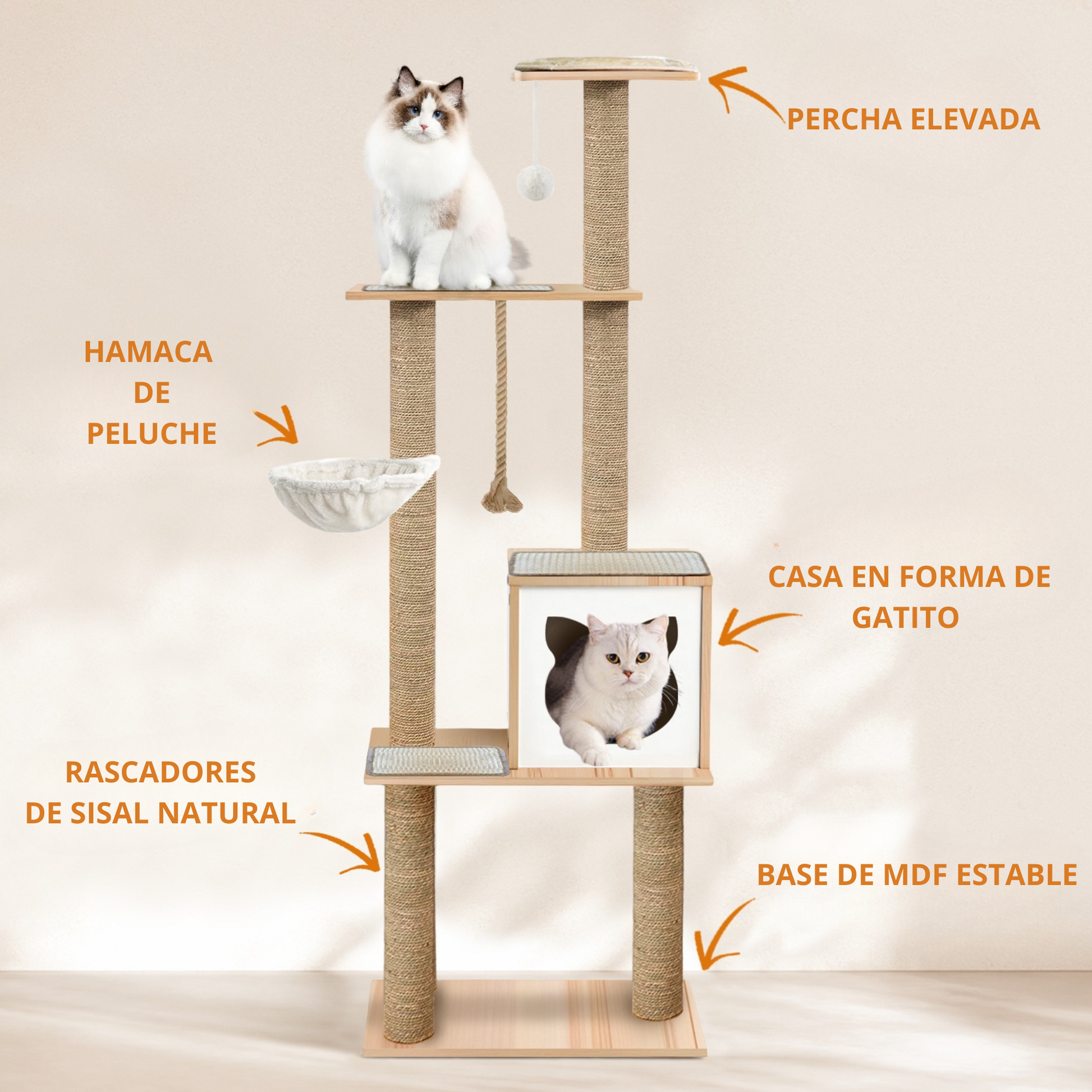 -Capacidad: hasta 3-5 gatos
